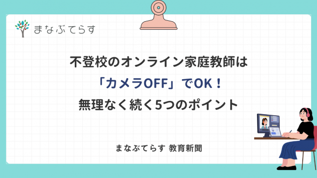 不登校 不登校のオンライン家庭教師は「カメラOFF」でOK!無理なく続く5つのポイント 2026年4月10日 まなぶてらす編集部 不登校の子にオンライン家庭教師が向くケースとはどのような場合でしょうか? 不登校の子どもを持つご家庭が家庭教師を検討するとき、最初に気 …