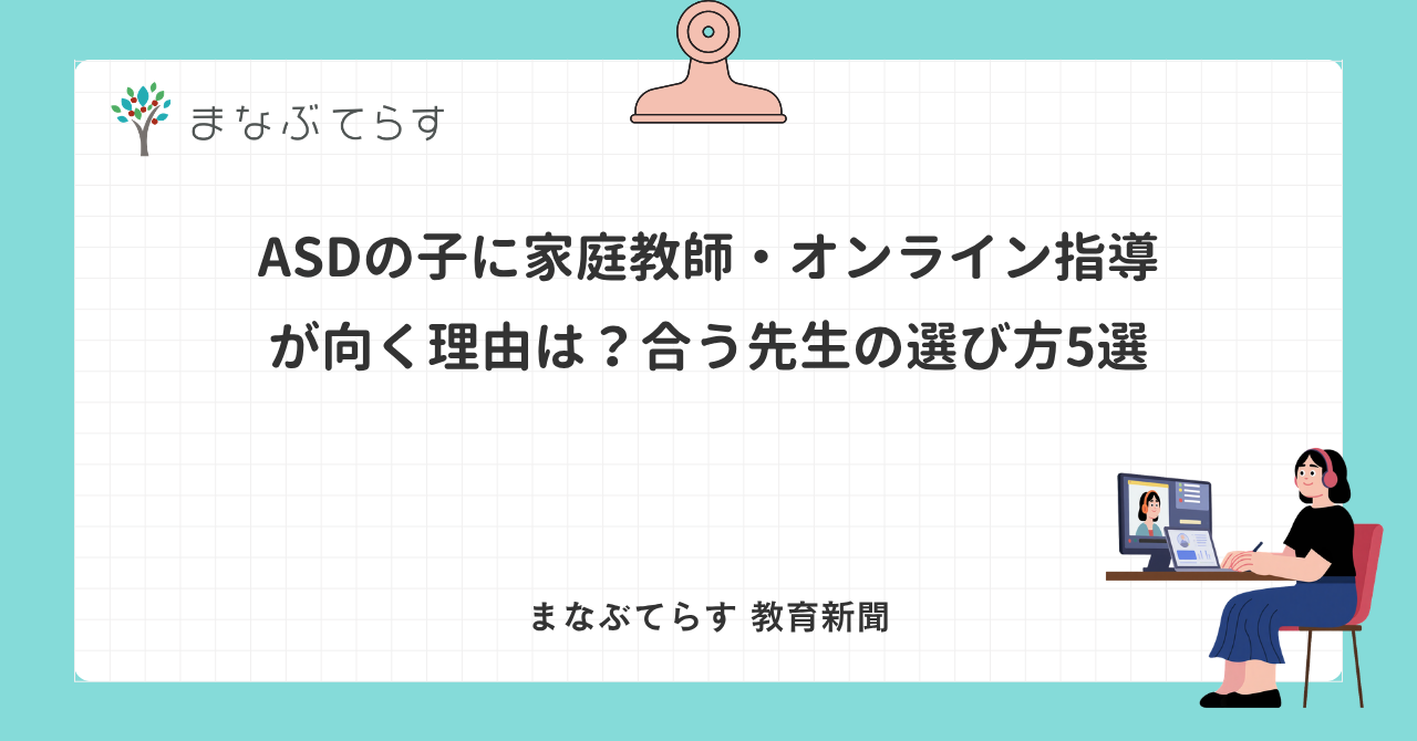 この記事では、ASDの特性があるお子さんに家庭教師・オンライン個別指導が向く理由、「合う先生」を見極める5つの観点、そして家庭側でできる環境づくりまでを具体的に解説します。