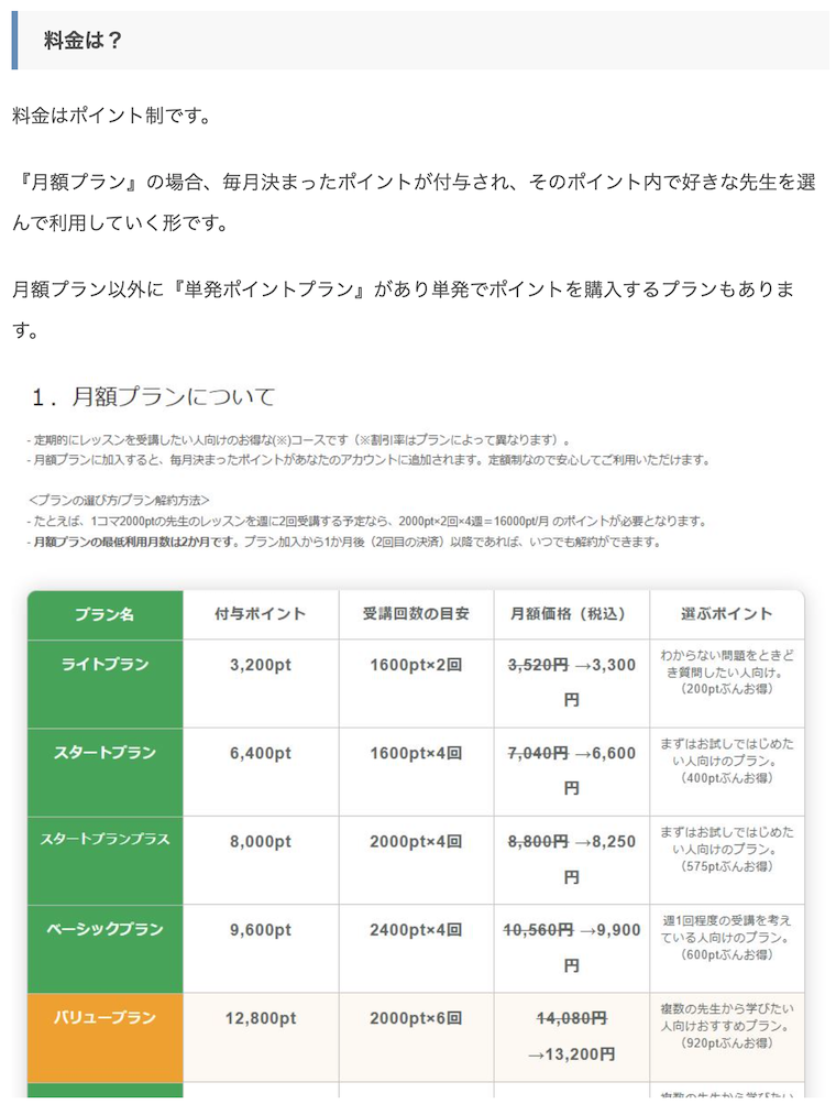 教育サービスを利用する上で、やはり最大の関心ごとは「どの程度の費用がかかるのか」だと思うので、このように紹介いただけて大変ありがたいです。