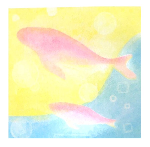 大人だと固定概念があるので、ついつい普通な濃いブルーを選びがちですが、ピンクのかわいいイルカが出来上がりました。