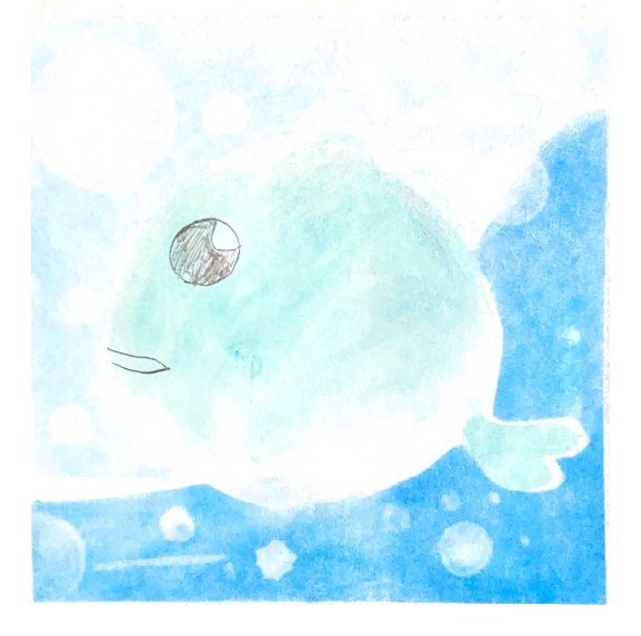 シャボン玉もテクニックが必要なのですが、ふわふわと浮かぶ様子を上手に描くことができています。